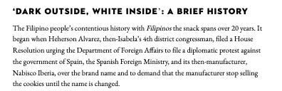 This was unsuccessful, but 20 YEARS LATER, it sparked new criticism because they tried selling them in a Manila market, and they charged it had racist undertones and trademark law violation. Despite removal from shelves, interest remains, the cookie controversy continues…