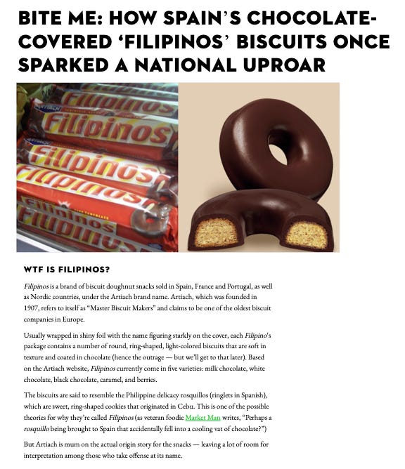 "The only thing I know about Filipinos is the “Filipinos Cookies” and they are so yummy!” (a snack that originated in Spain, see the history of its controversy below)